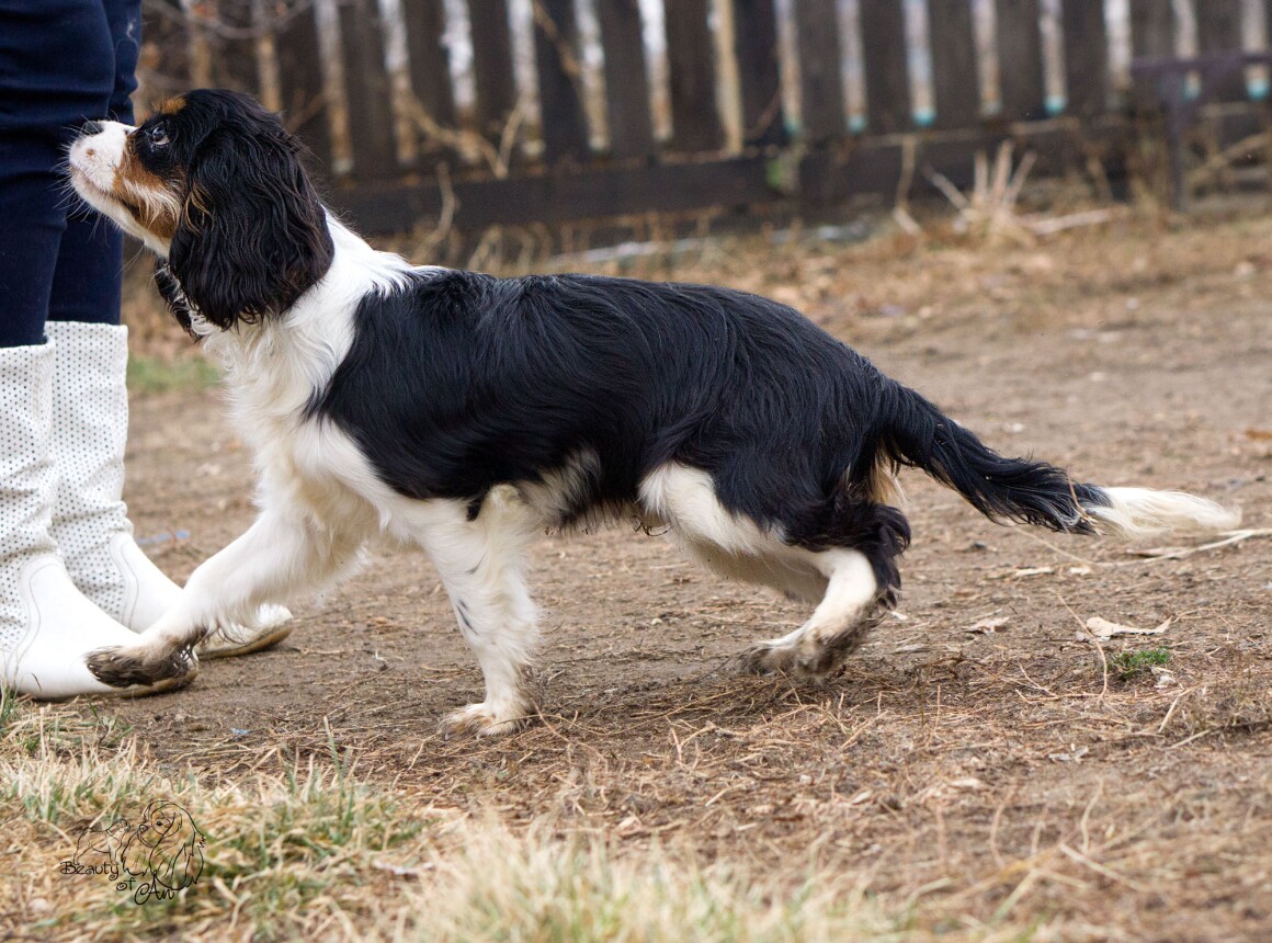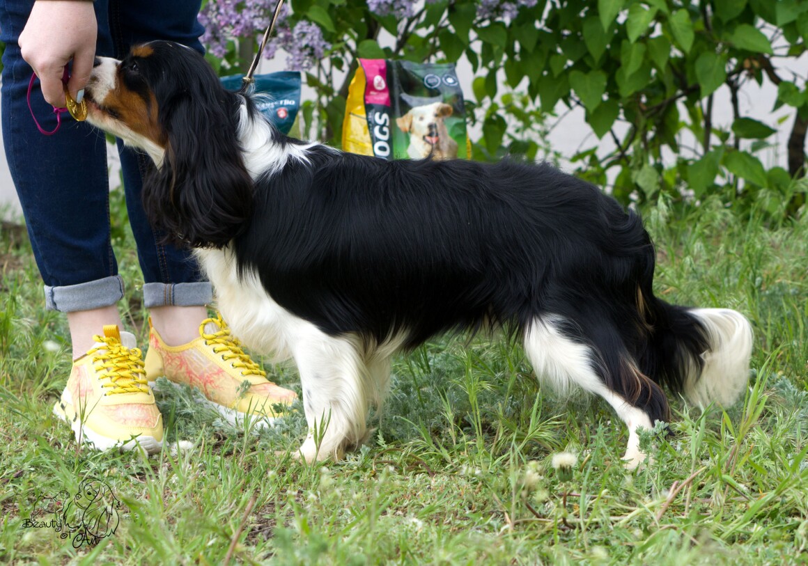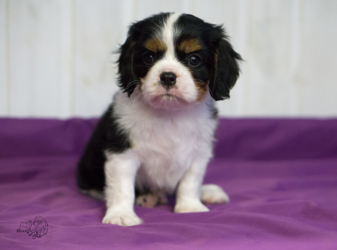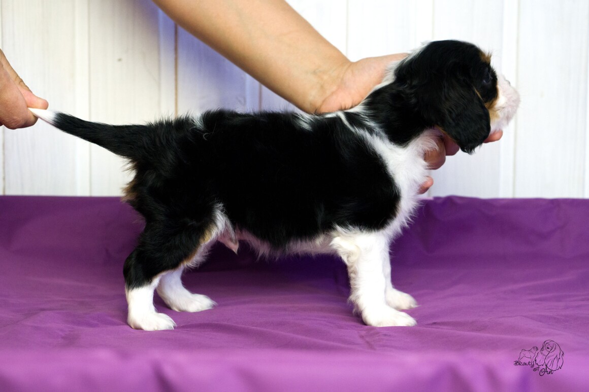 Яркий представитель Кавалер Кинг Чарльз спаниель в окрасе триколор, успешный на выставках в Волгограде.